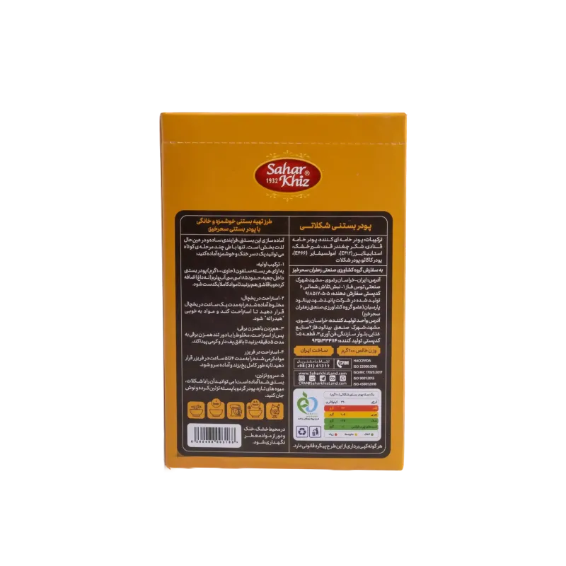 پودر بستنی شکلاتی سحرخیز تهیه شده از مواد طبیعی و باکیفیت، فاقد نگهدارنده و افزودنی شیمیایی، با طعم واقعی شکلات